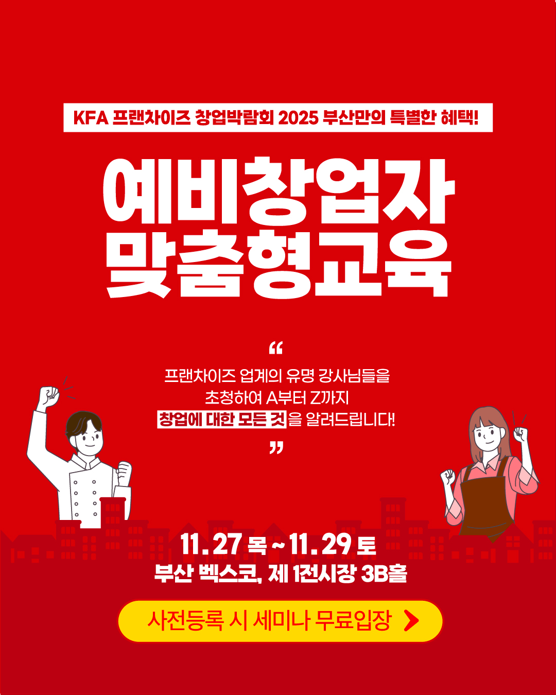 [25/11/27(목)~29(금)] 2025 KFA 프랜차이즈 창업박람회 부산_무료 컨설팅관리자2025.11.218134 -